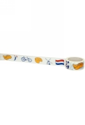 De bedrukking heeft tulpen, klompjes, een Nederlandse vlag, een klassieke molen, een fiets en een stuk kaas.