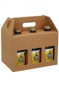 Deze bierverpakking draagdoos Kraft is geschikt voor 6 dikbuik flesjes van 33cl. Met vakjes van 7x7 cm en gemaakt van stevig 485 grams kraft karton. Voorzien van een draaghengsel waardoor de doos eenvoudig mee te nemen is. Ideaal als geschenkverpakking voor speciaalbier of als aanvulling in een biercadeaupakket.