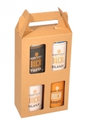Deze natuurlijke kraft bierverpakking is ideaal om vier blikjes van 33cl mooi te presenteren of cadeau te geven. De verpakking is gemaakt van stevig FSC®-gecertificeerd karton en voorzien van een praktische draaggreep. Door de vensters aan de voorkant zijn de blikjes goed zichtbaar, wat zorgt voor een ambachtelijke en duurzame uitstraling.