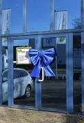 Deze Lucca deurstrik is een stijlvolle en feestelijke decoratie voor bijvoorbeeld de opening van een bedrijfspand, showroom of winkel. De strik wordt kant-en-klaar geleverd en is eenvoudig te bevestigen met de bijgeleverde zuignap van 8 cm. Gemaakt van glanzend satijnlint, valt deze strik onder onze collectie Grote Strikken en is hij perfect voor bijzondere momenten waarbij u nét dat beetje extra wilt uitstralen. Er is ook extra lint beschikbaar in dezelfde satijnkwaliteit. Ideaal voor het doorbinden van deuren, trapleuningen of andere accenten in uw decoratie. Onze Megastrikken zijn daarnaast volledig op maat te maken in uw eigen bedrijfskleuren en kunnen voorzien worden van een logo. Zo zorgt u voor een professionele en feestelijke uitstraling die perfect aansluit bij de identiteit van uw organisatie.