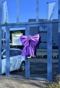 Deze Lucca deurstrik is een stijlvolle en feestelijke decoratie voor bijvoorbeeld de opening van een bedrijfspand, showroom of winkel. De strik wordt kant-en-klaar geleverd en is eenvoudig te bevestigen met de bijgeleverde zuignap van 8 cm. Gemaakt van glanzend satijnlint, valt deze strik onder onze collectie Grote Strikken en is hij perfect voor bijzondere momenten waarbij u nét dat beetje extra wilt uitstralen. Er is ook extra lint beschikbaar in dezelfde satijnkwaliteit. Ideaal voor het doorbinden van deuren, trapleuningen of andere accenten in uw decoratie. Onze Megastrikken zijn daarnaast volledig op maat te maken in uw eigen bedrijfskleuren en kunnen voorzien worden van een logo. Zo zorgt u voor een professionele en feestelijke uitstraling die perfect aansluit bij de identiteit van uw organisatie.