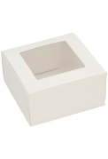 Strakke, witte cateringdoos met venster, ideaal voor het presenteren en verpakken van kleine lekkernijen of luxe traktaties.