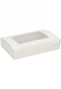 Strakke, witte cateringdoos met venster, ideaal voor het presenteren en verpakken van kleine lekkernijen of luxe traktaties.