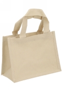 Deze stevige katoenen draagtas met korte hengsels is ideaal voor het verpakken van cadeaus, flessen of luxe geschenken. De tassen zijn uitgevoerd in een natuurlijke kleur en hebben een gladde, gelamineerde binnenzijde waardoor ze vochtbestendig zijn en mooi in vorm blijven.