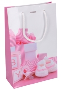 Deze tasjes van 16x7x25cm hebben een leuke print op de voor- en achterkant en zijn bijvoorbeeld te gebruiken voor babypakketjes voor babyshowers.