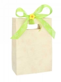 Dit stijlvolle tasje, gemaakt van stevig 275 grams karton, heeft een charmante shopper-vorm en een handige handgreep.