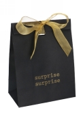 Op de voorkant staat de tekst 'Surprise Surprise' in een goudkleur.