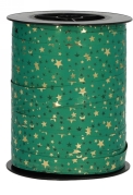 Kerst Krullint Mat Groen Stars Goud Metallic 10mm x 250meter