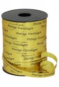 Kerst Krullint Metallic Mat Goud Prettige Feestdagen 10mm x 250 meter