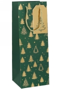 Kerst Wijntasjes 1 Fles Green Golden Trees 12.5x9x36.5cm 10stuks