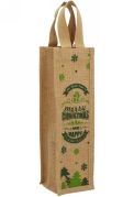 Wijnflestas Merry Christmas groen Jute is een mooie wijnflestas voor het verpakken van uw fles wijn.