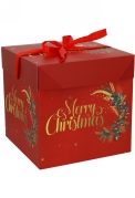 Kerstgeschenkdoos Merry Christmas Krans Lint Red 21.5x21.5x21.5cm 12st