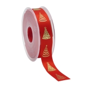 Geef cadeauverpakkingen een luxe kerstlook met rood lint en goudfolie kerstboom. Strikken blijven mooi in vorm en zijn perfect voor cadeaudozen, wijnverpakkingen en kerstpakketdozen.