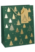 Kersttasjes Groot Green Golden Trees 26.5x13.5x32.5cm 10stuks