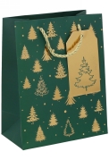 Kersttasjes Medium Green Golden Trees 18x10x23cm