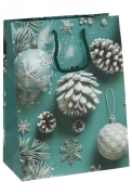 Het ijzige turquoise vormt een prachtig contrast met de witte dennenappels, sneeuwvlokken en glinsterende kerstballen die de tas sieren. Alsof u een stukje winterwonderland in handen heeft.