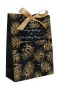 Het kadotasjes is zwart mat met gouden bedrukking en is gemaakt van 170grams papier, BxDxH, Dubbelzijdig bedrukt met de tekst: Prettige Feestdagen en een Gelukkig Nieuwjaar prijs per 10 stuks exclusief het lint