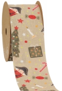 Geef je kadoverpakkingen een rustieke en nostalgische kerstsfeer met dit luxe kadolint. Het lint is uitgevoerd in een natuurlijke beige ondergrond met kerstprints zoals bomen, cadeautjes, sterren en candy canes.