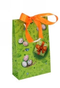Paastasjes Happy Easter Bunny Met Lint Gleuf is een groen geschenktasje met een leuke paasbedrukking.