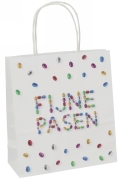 Papieren Draagtas Fijne Pasen Eitjes A5 19x8x21cm, verkrijgbaar per 50 stuks.