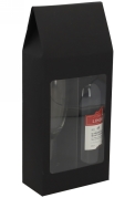 De Piccolo Wijnverpakking Tivoli Black Window 15.5x7.5x30cm is een luxe matzwarte kadoverpakking van 400gsm karton met een helder PVC-venster van 10.5x15 cm dat 3.5 cm vanaf de onderzijde start. De schuine top sluit netjes met dubbelzijdig tape (10x2 cm).Je sluit de wijnverpakking met dubbelzijdig tape wat al op het doosje vast geplat is.